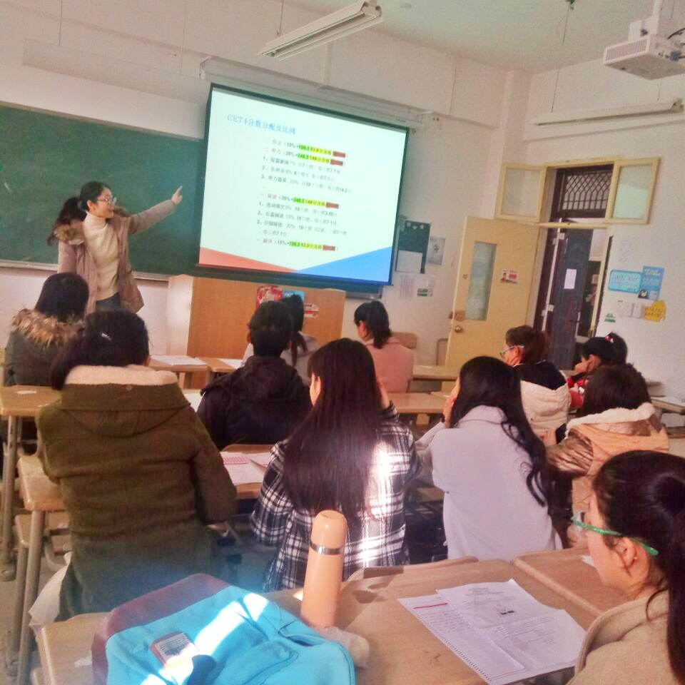 大学英语四级模拟考试反馈分析报告会于11月26日早十点在一号教学楼B栋505教室举行。志愿者协会分管老师根据学生们的答题和得分情况,向学生们详细讲解了听力、阅读、写作和翻译四个板块存在的问题,考试的技巧和短期复习的要领;叮嘱学生要合理分配时间,根据题目分值与难度进行取舍,不能眼高手低、不知取舍,并回答了同学们提出的各种问题。