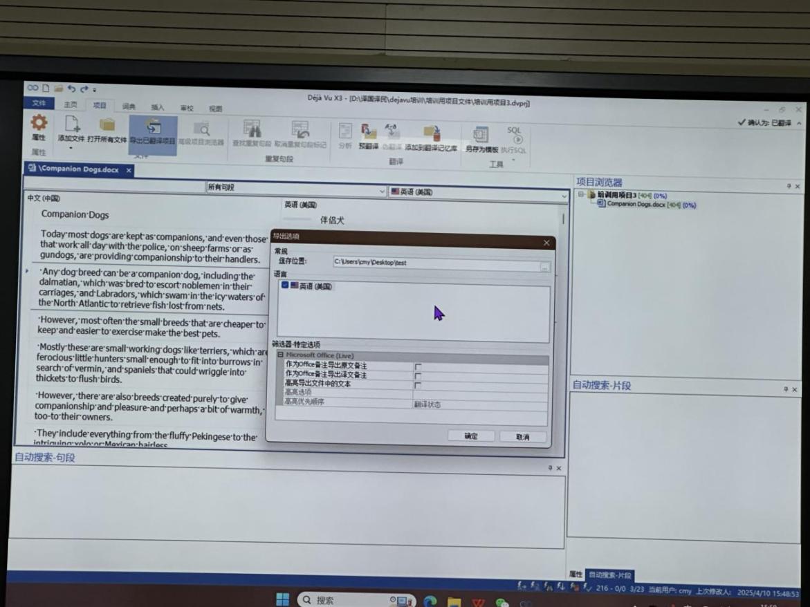 在分组实训环节,学生们以小组为单位,对某跨境电商平台的产品描述进行翻译实战。译员团队深入各组,针对译文的专业术语准确性、语言风格适配性、格式规范等问题进行一对一指导。张同学表示:“以前在课堂上做翻译练习,更关注语言本身的转换,今天才意识到译文还要符合目标市场的文化习惯和客户的特定需求,这种‘沉浸式’学习让我对翻译职业有了全新认知。”