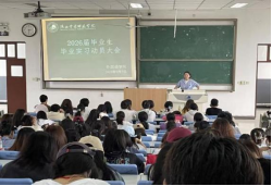 9月3日下午,外国语学院在1教楼C3阶梯教室隆重举行2026届毕业生实习动员大会。外国语学院副院长刘少杰、学院实习工作专项负责人高倩老师、吕萌老师、毕业班辅导员陈燃老师、艾菁老师和全体毕业生参加了动员大会。会议由副院长刘少杰主持。