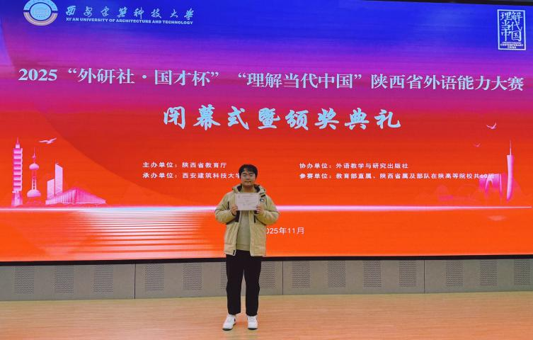 11月1至2日,2025“外研社·国才杯”“理解当代中国”陕西省外语能力大赛省赛在西安建筑科技大学雁塔校区圆满落幕。我院学子凭借扎实的外语功底、出色的综合素养和稳定的临场发挥,在多个赛项中脱颖而出,斩获多项荣誉。
